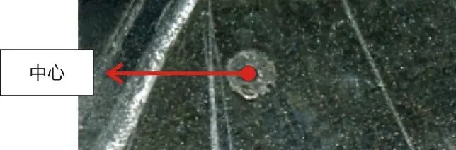 可以调整激光在喷嘴的中心点。调整方法可以在喷嘴出光口位置贴透明胶,然后按点射,取下透明胶,如图所示。(如光不在中心会造成切割不稳定,切割有毛边。)